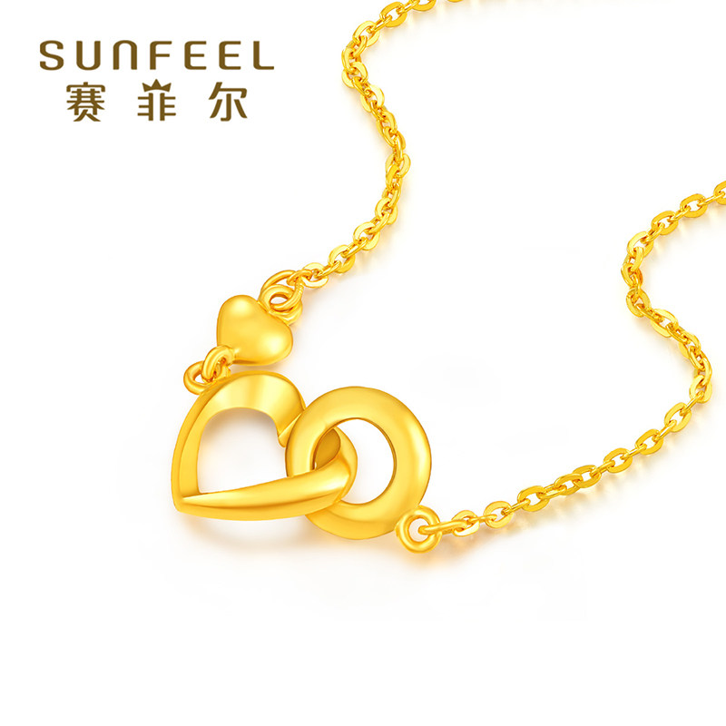 Saifir gold necklace foot gold 999 9 Loving Lock Bone Chain Concentric sets Valentine's Day to send girlfriend