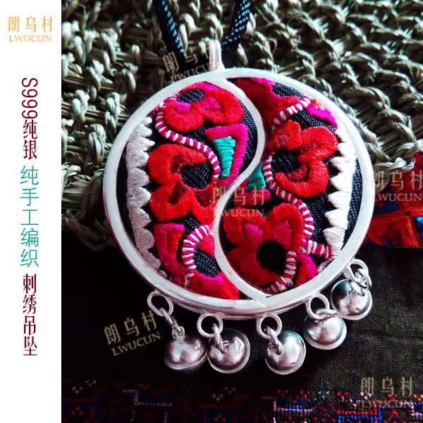 Guizhou Langu Village Miao Silver Jewelry S999 Pure Silver Pure Hand Woven Pendant bell Bell Pendant National Wind Literature