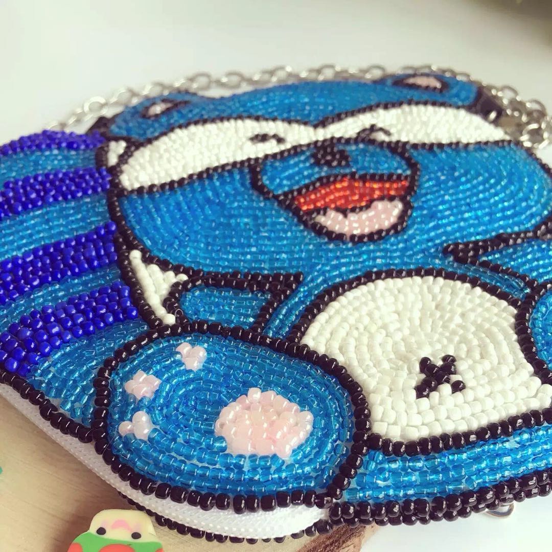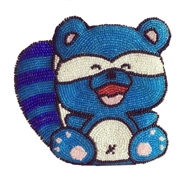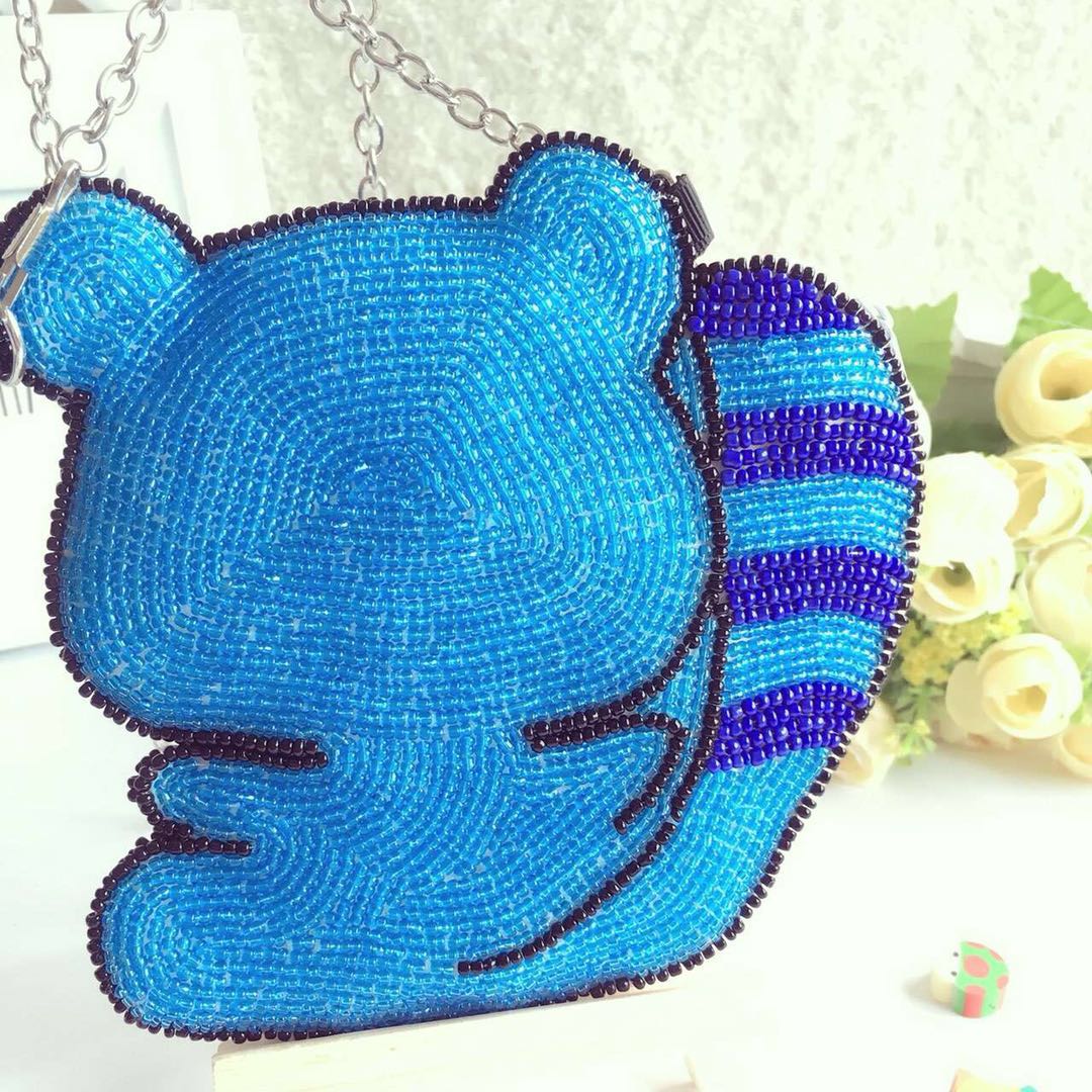 Rhododendron Beaded Embroidery Factory Direct Handmade Beaded Cartoon Cute Blue Bear One Shoulder Portable Messenger Bag