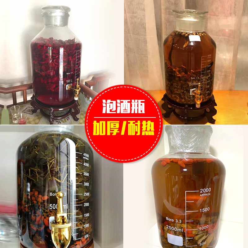 Soaking wine glass bottle thick wide mouth wine jar household seal 10 kg high-grade with faucet special jar with lid wine bottle