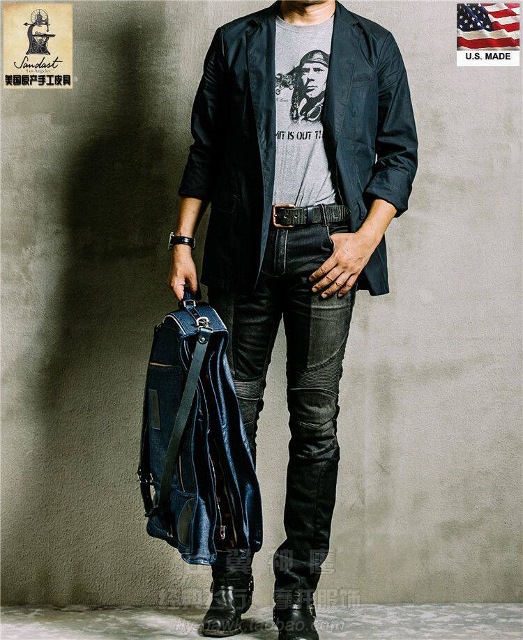 Sandast China Generation American Handmade Tanning denim cloth Stanley Retro Suite Travel Pack