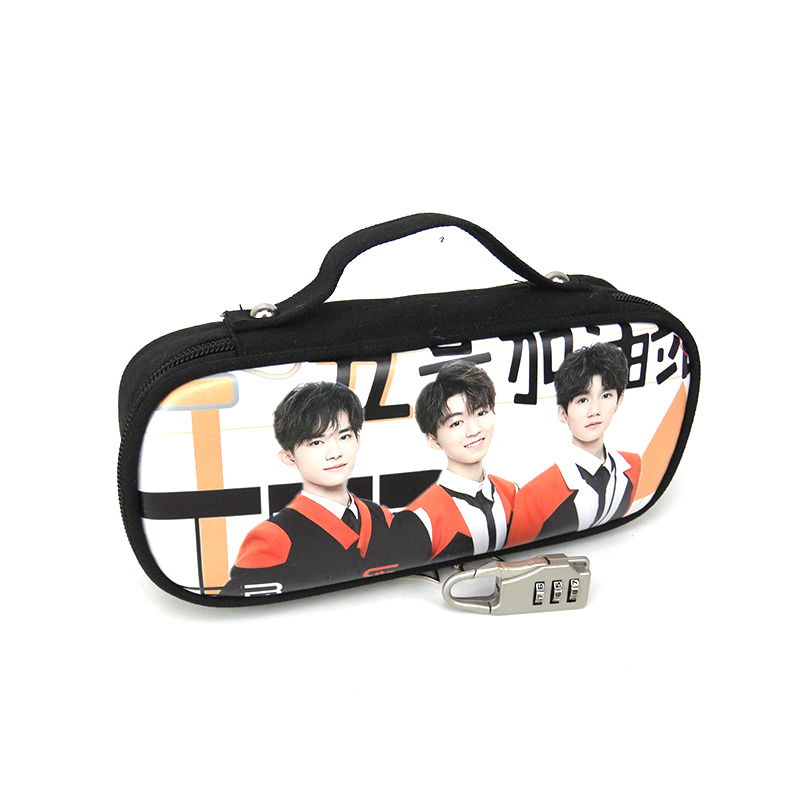 Korean stationery tfboys Wang Junkai simple large-capacity PU pencil case password lock leather pencil case