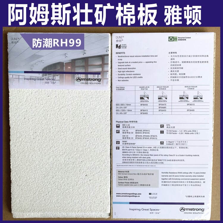 Armstrong Arden Spray Sand Mineral Cotton Board 3651B Office Moisture Resistant Ceiling 600*600 Ceiling Sound Absorbing Board
