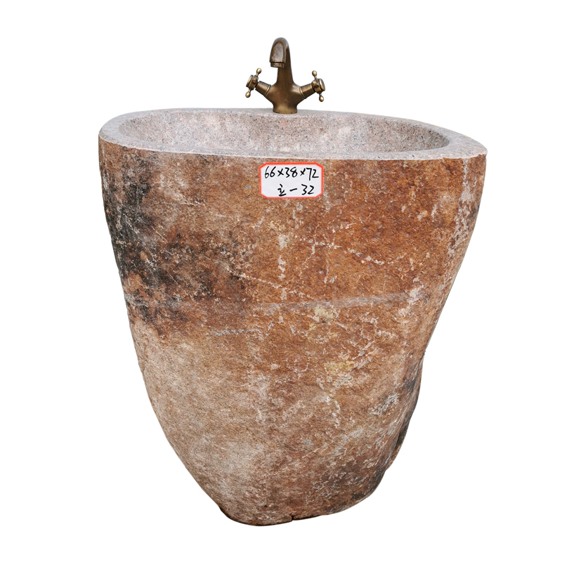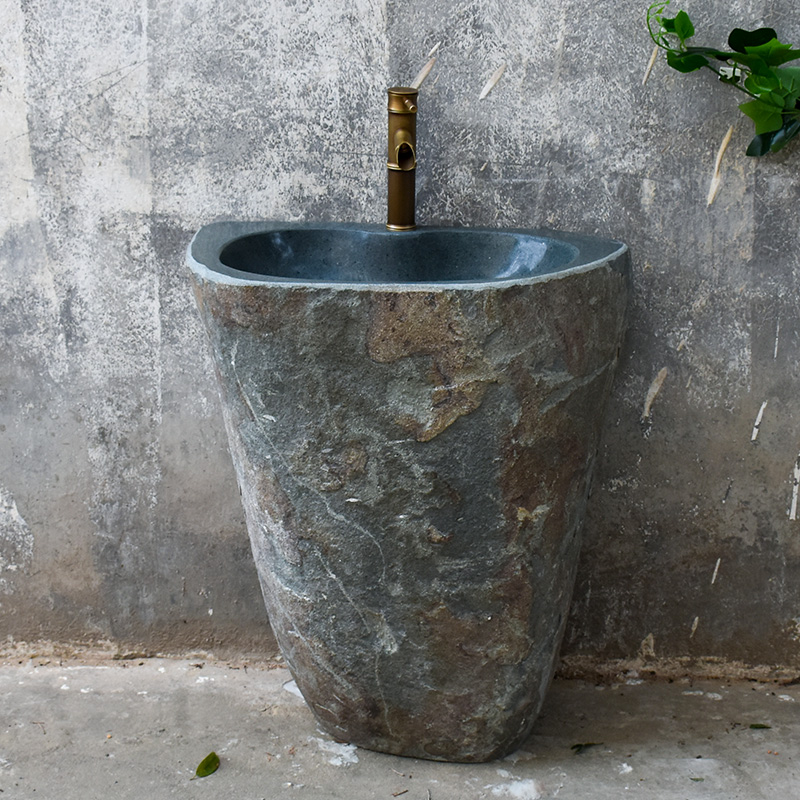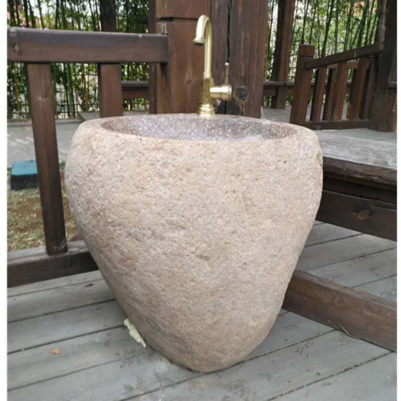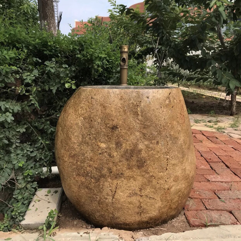 Stone one-in-one washing column basin pebbles retro basin floor-standing courtyard personality Art Wash Basin pool