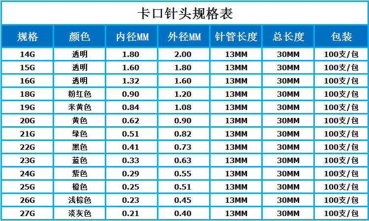1 2 16G 100 1 2 18G 100 1 2 19G 100 1 2 20G 100 1 2 20G