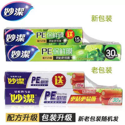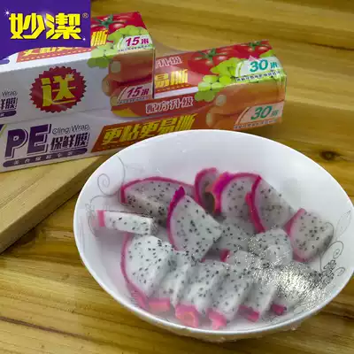 Miaojie cling film household food neat tear big roll kitchen fruit cutter thin leg 30 meters box sent 15 meters