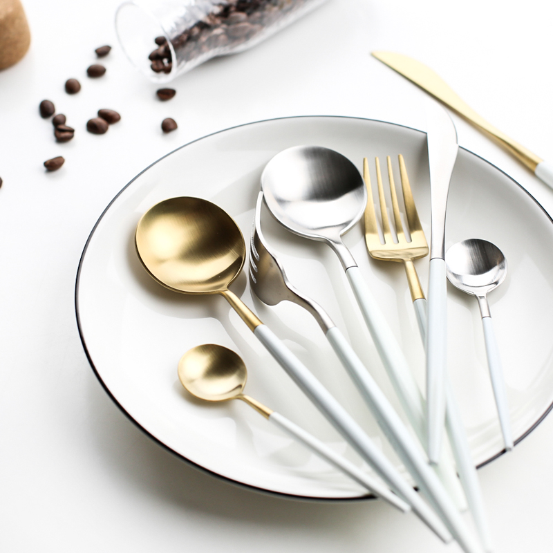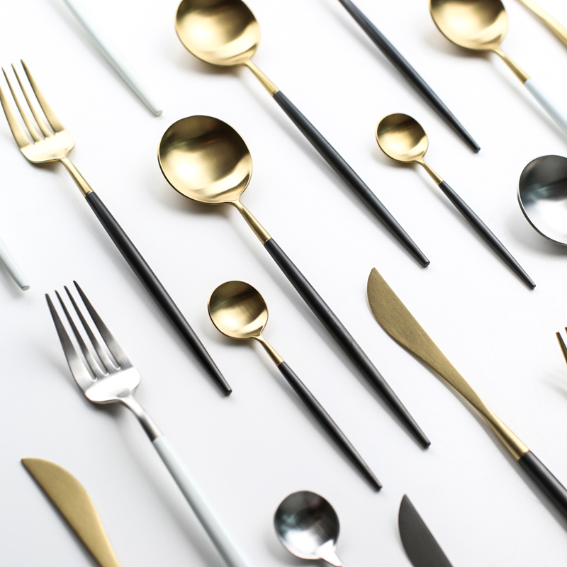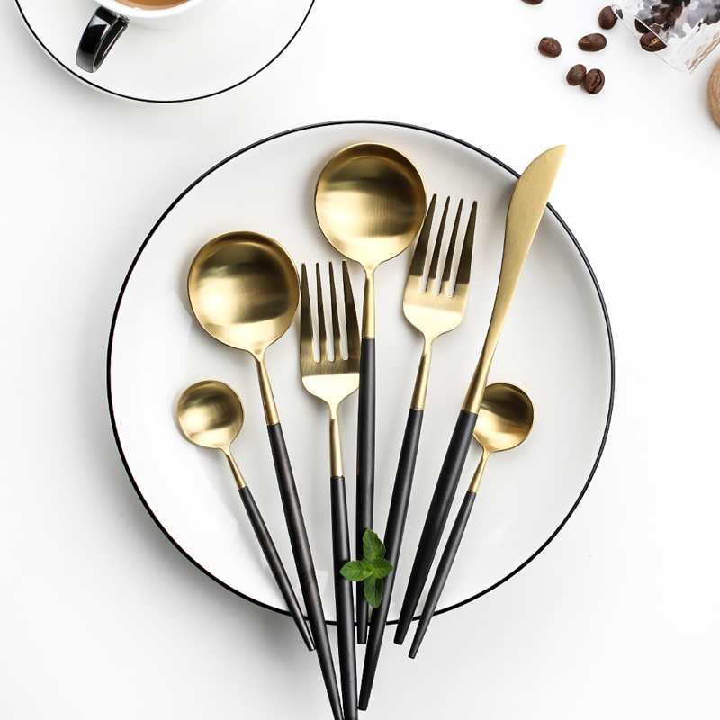 Black gold main knife Black gold main spoon Black gold main fork Black gold dessert spoon Black silver main knife Black silver main spoon Black silver Main fork Black Silver Dessert spoon Platinum Main Knife Platinum Main Spoon
