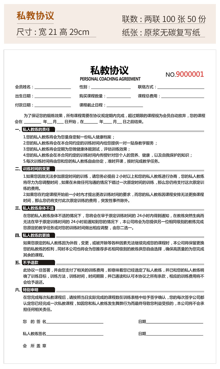 Fitness Accession Agreement Set For Private Education Agreement Dance Yoga Membership Contract Agreement Sales Class Schedule Customized