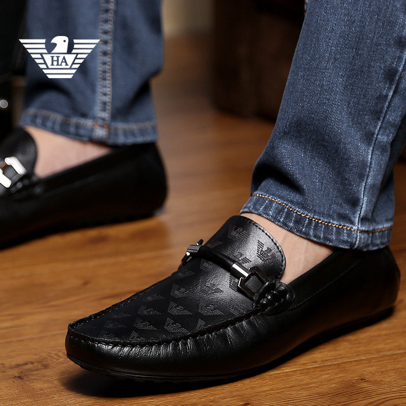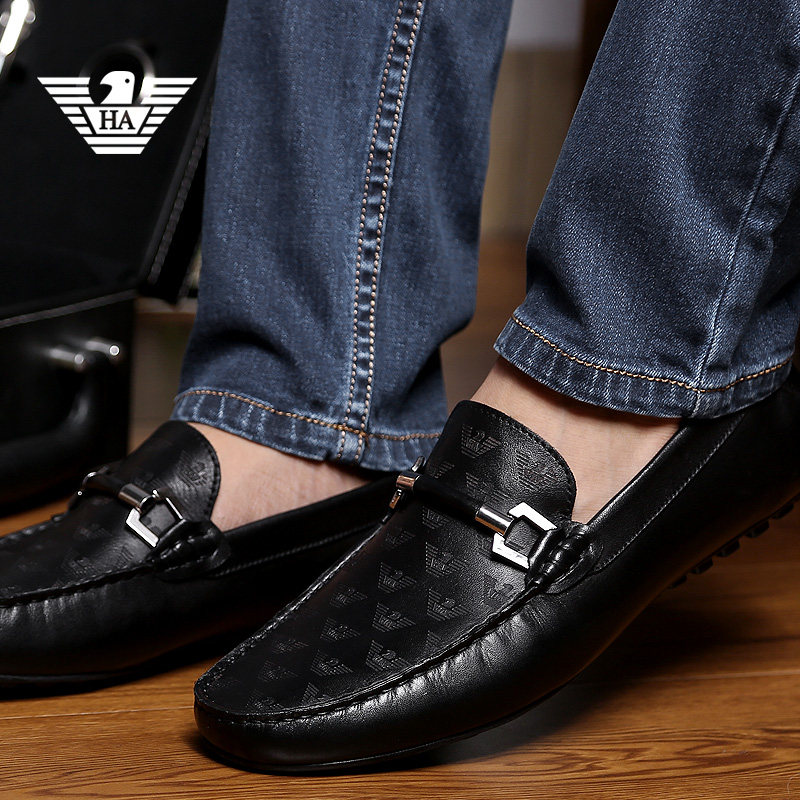 Italian casual peas shoes men's genuine leather top layer cowhide business British all-match breathable low-top lazy driving shoes