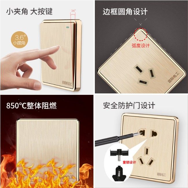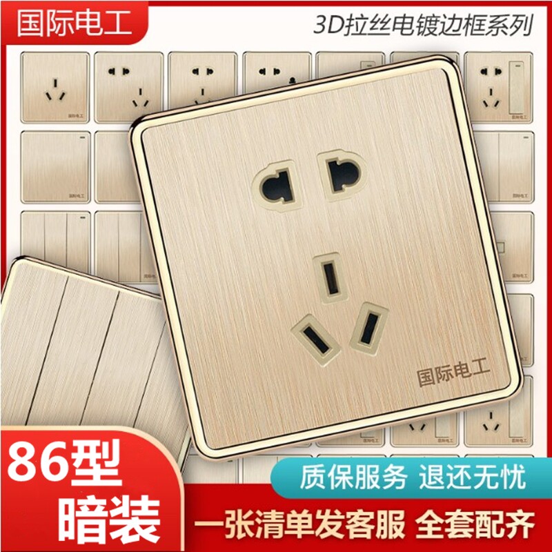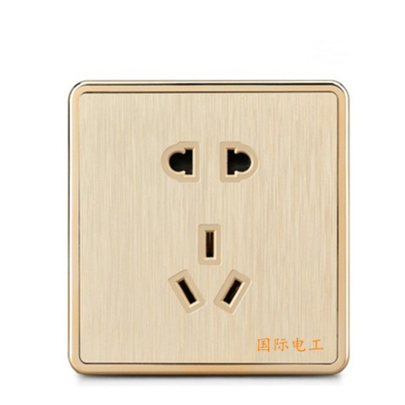 ZS International Electrician Switch Socket 86 Type Concealed Champagne Gold Wire Drawing Power Supply 23 Inserts 5 Eyelets Five Holes Socket