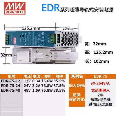 EDR-75-12 12V6 3AEDR-75-24 24V3 2AEDR-75-48 48V1 6AEDR-120-1