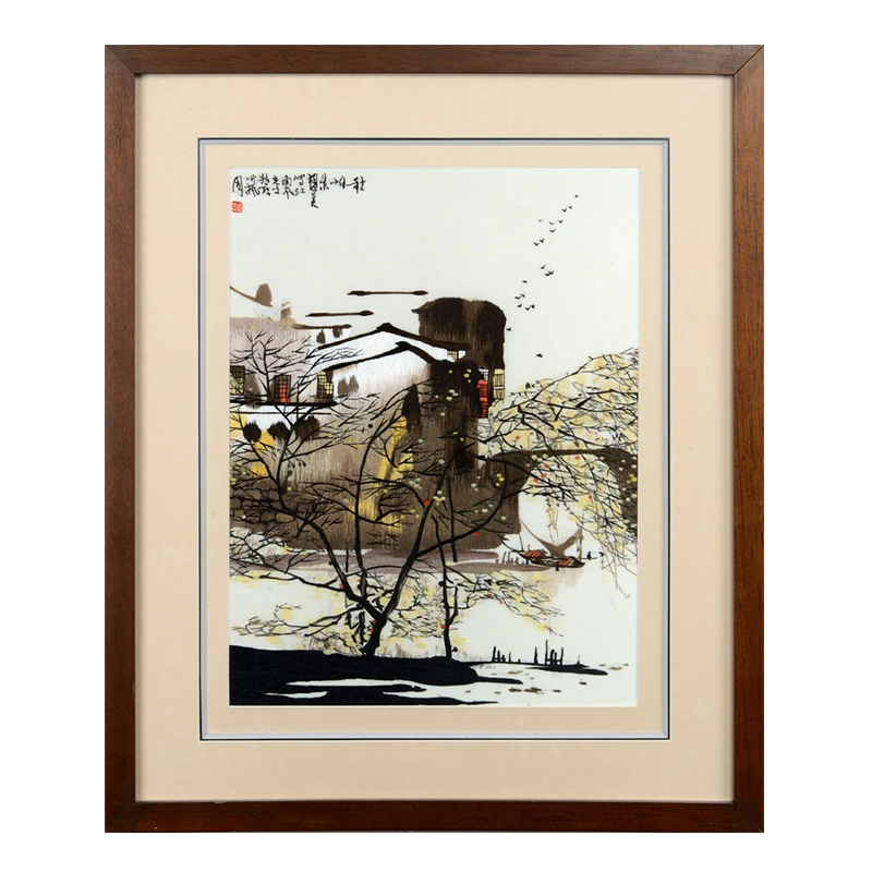 Jinwu needle embroidery painting Suzhou embroidery finished product hanging painting handmade living room painting dining room porch decoration painting Chinese style Jiangnan water town