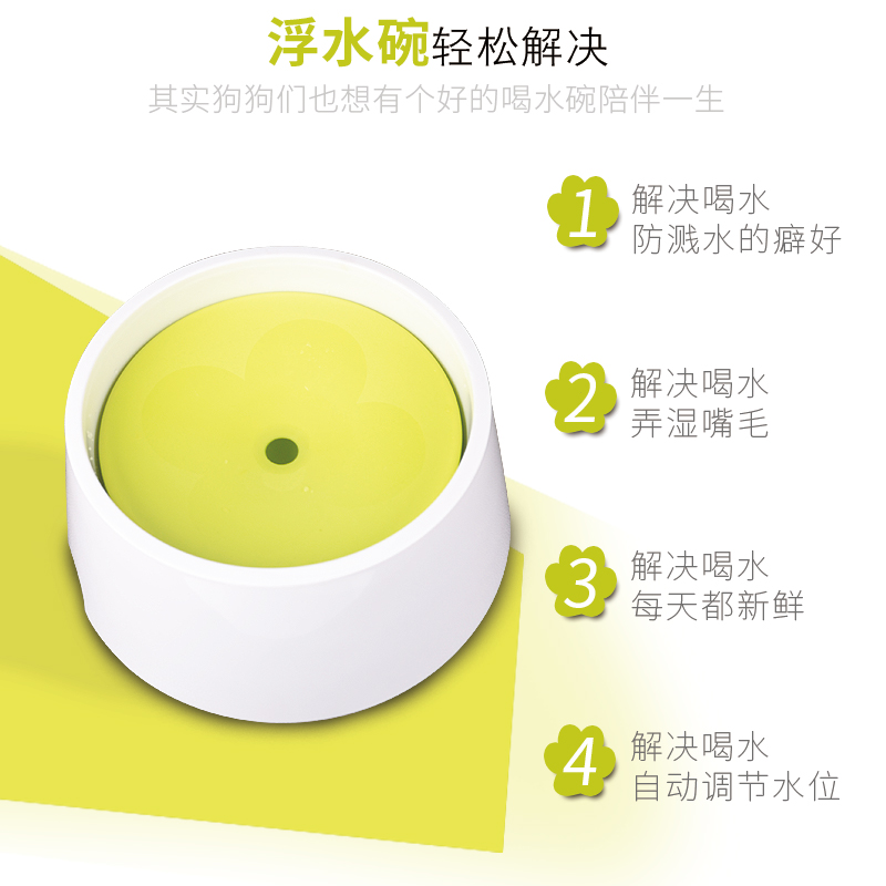 The first generation (for small dogs and cats), the second generation floating water bowl yellow (for large, medium and small dogs and cats), the second generation floating water bowl blue (for large, medium and small dogs and cats), the second generation floating water bowl purple (large and medium)