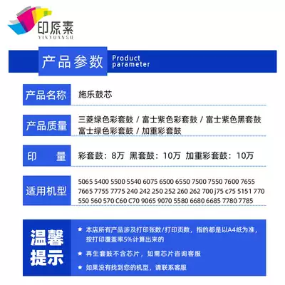 Recycled Drum Set without chip (for illustration only)Set(3 Fuji color 1 black)Recycled drum set(Color)Mitsubishi drum core Recycled drum set(color)Fuji Purple Recycled Drum Set(color)Fuji Green