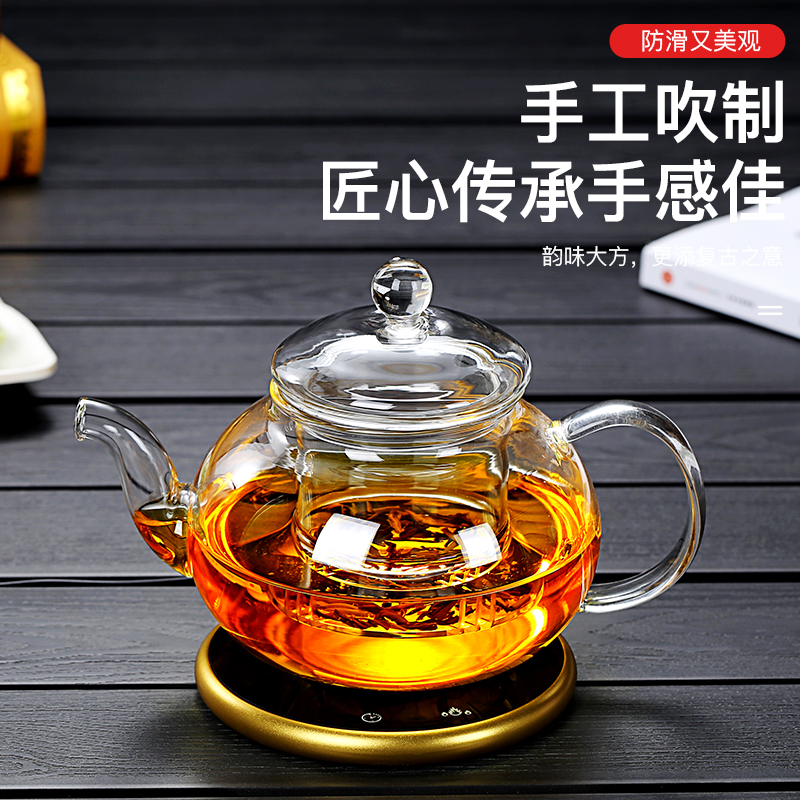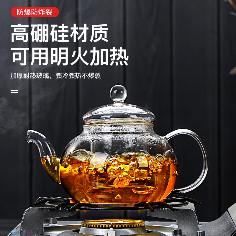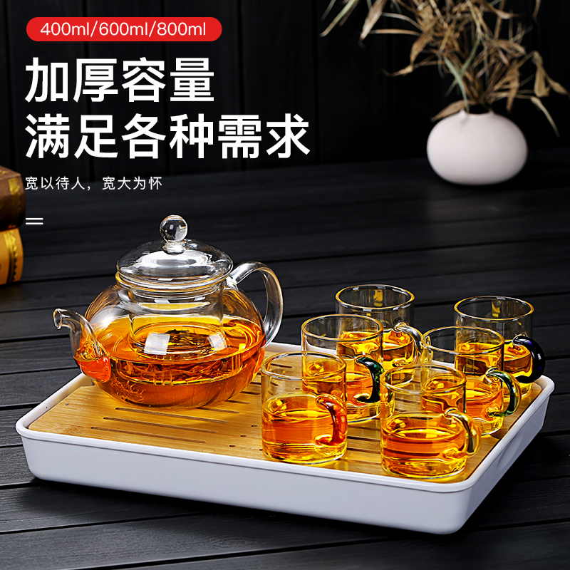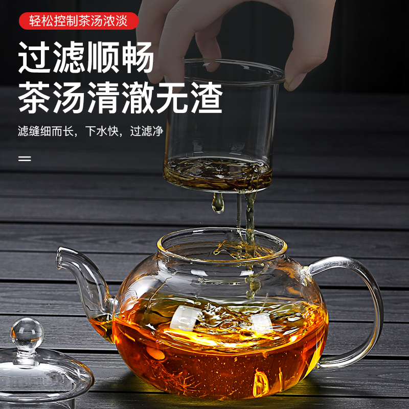 High temperature resistant glass teapot thickened household with filter glass tea pot Tea water separation flower tea pot Tea set