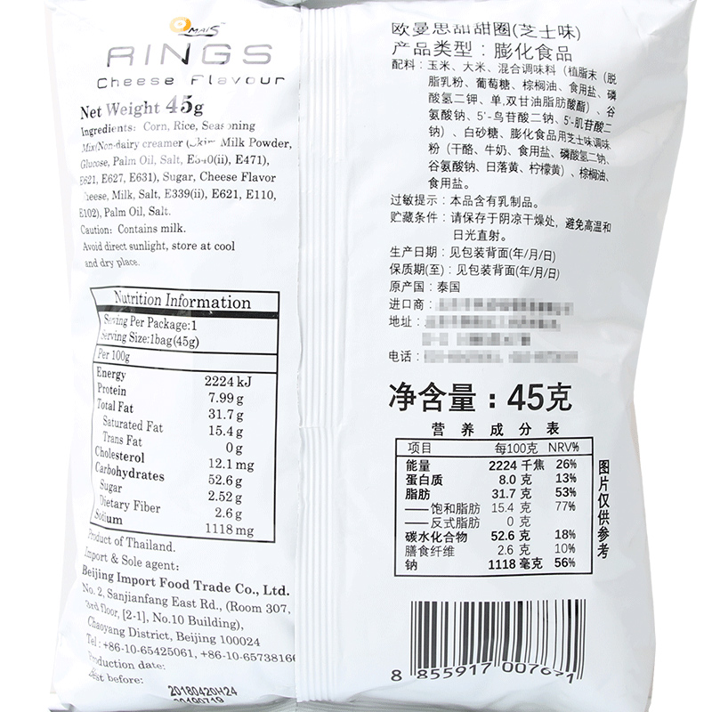 Thai imports Euromanth chocolate doughnut snacks Recommended Milk Cheese Taste Casual Food 45g * 3 bags