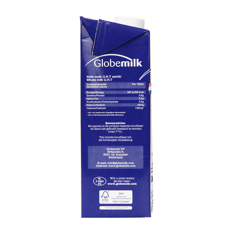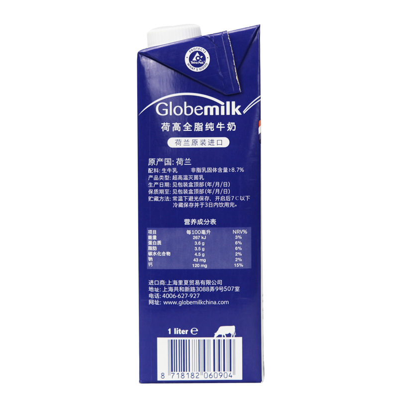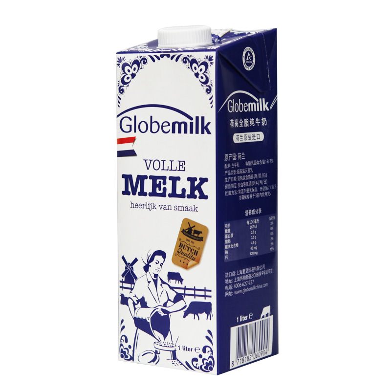 Dutch import ho high full fat pure milk 1L* 12 milk protein 3 6g high calcium milk