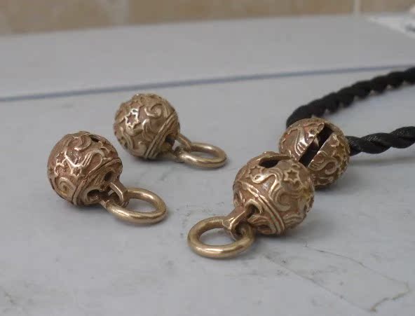 Old copper bell clang pendant vintage engraved flower copper bell clang hand chain Copper bell clang pendant retro style