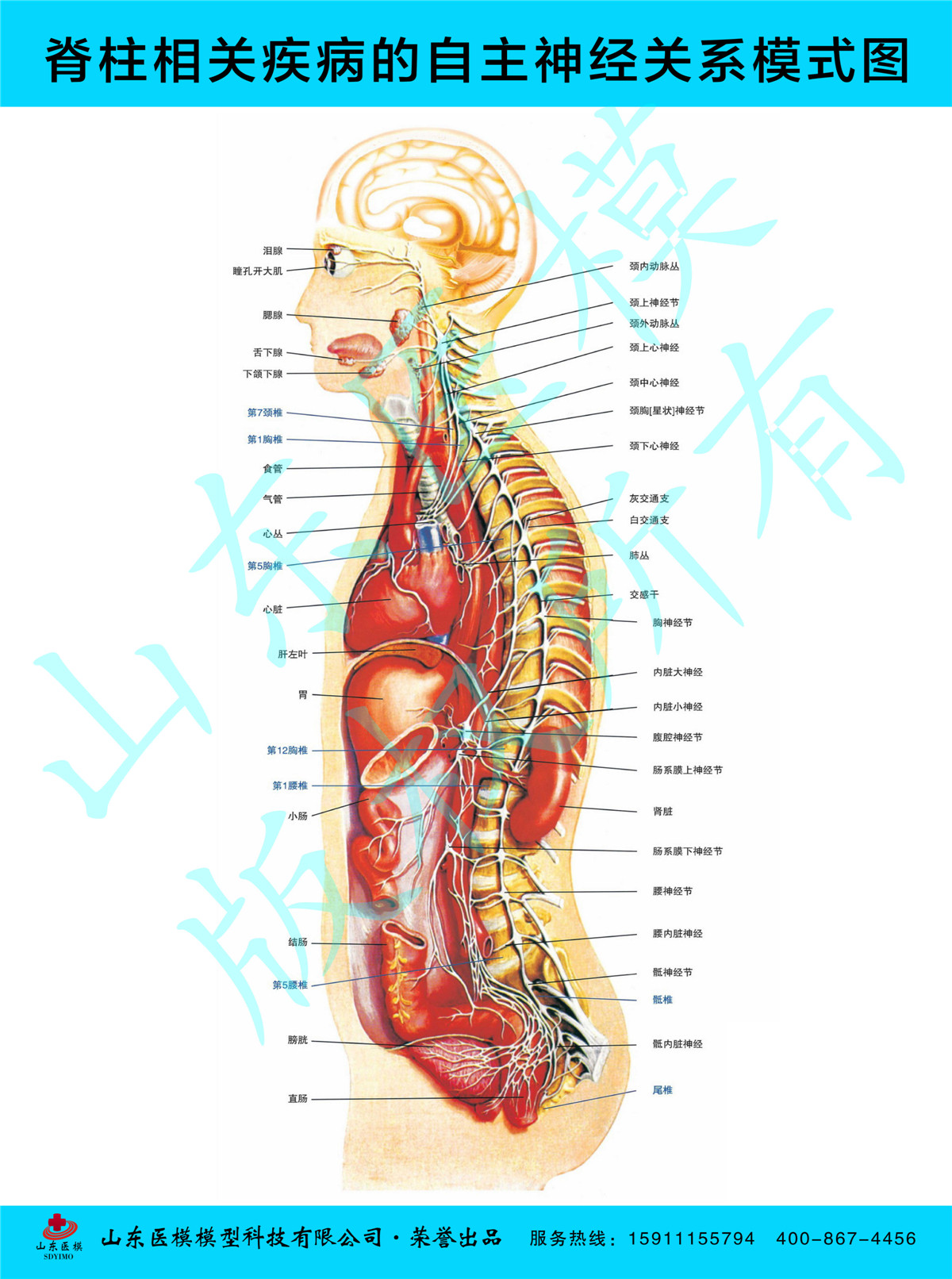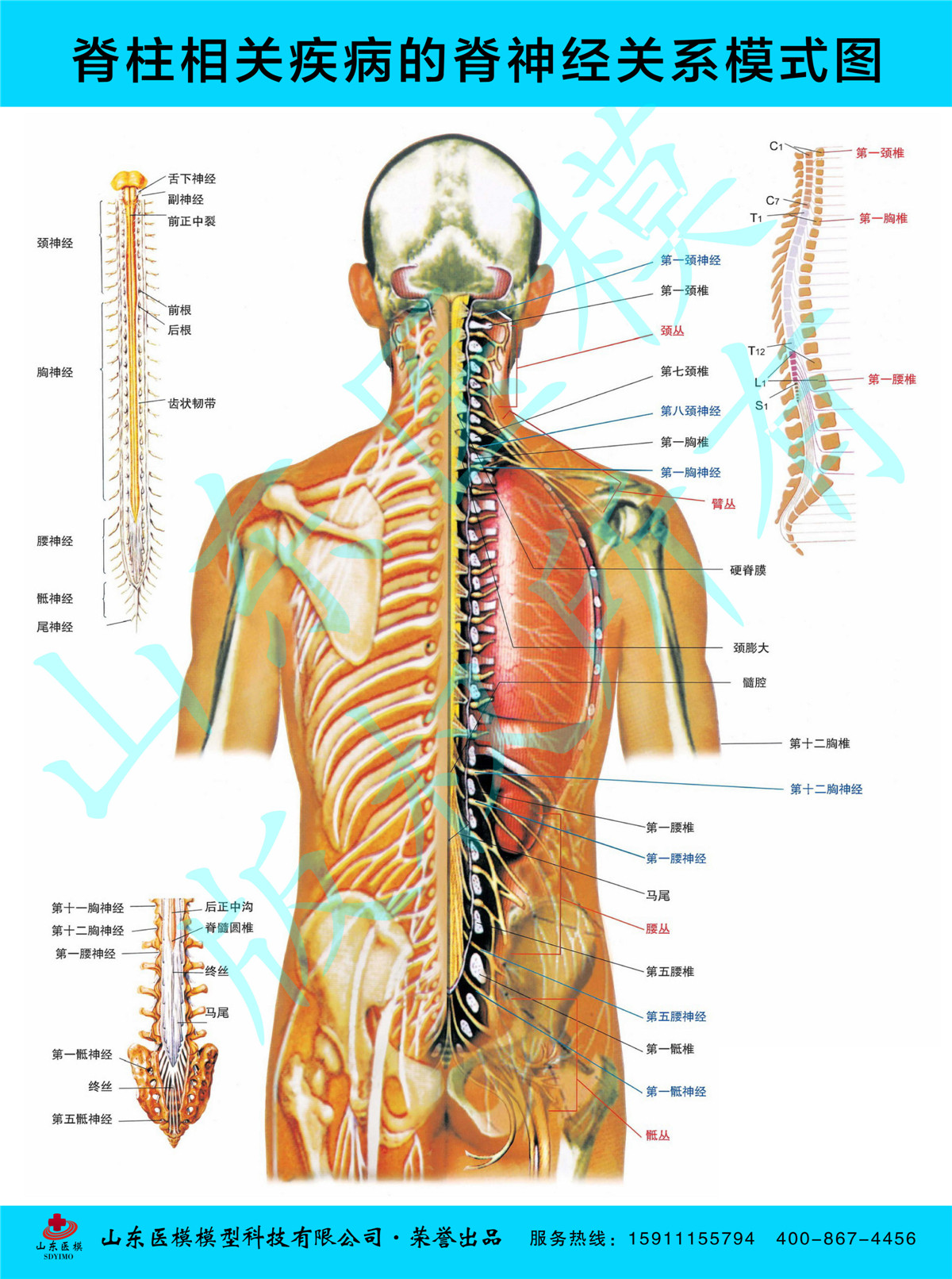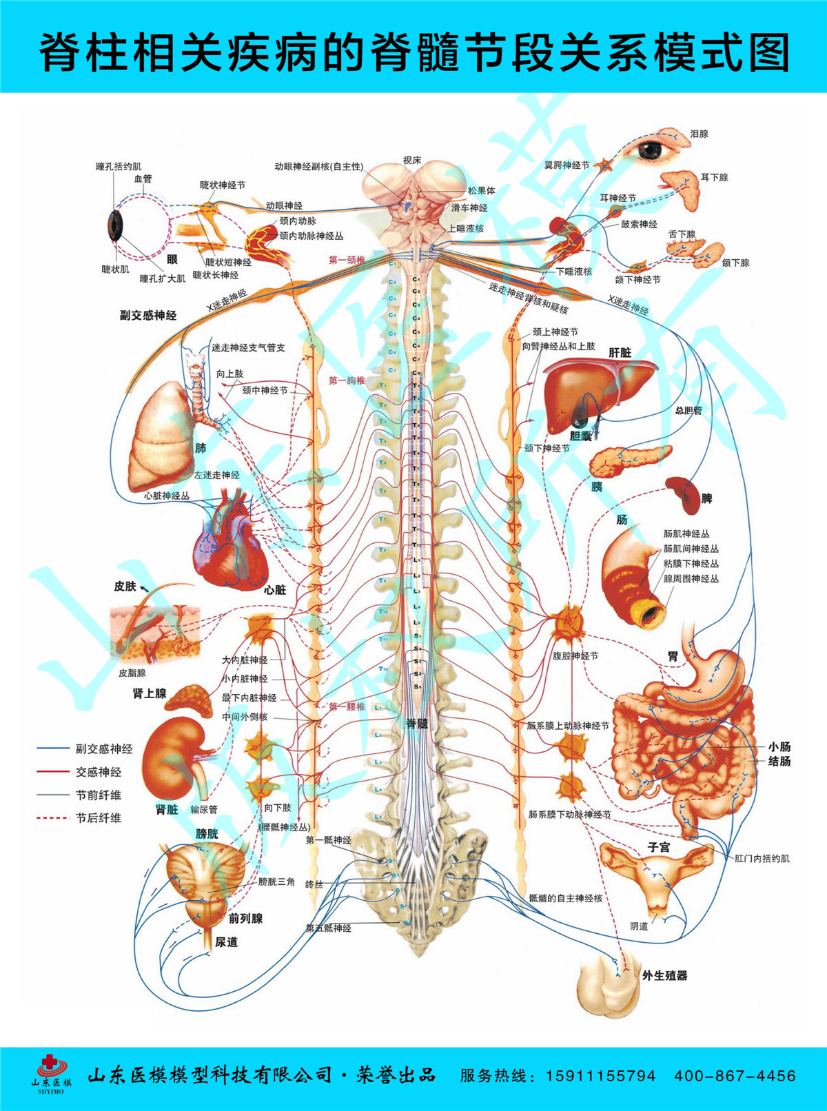Column wall chart Column disease poster Schematic wall chart of the related diseases and symptoms of segmental damage