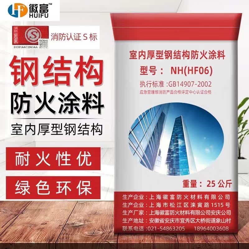 Shanghai Huifu indoor thick steel structure fireproof coating fireproof paint powder 25kg fireproof for 3 hours