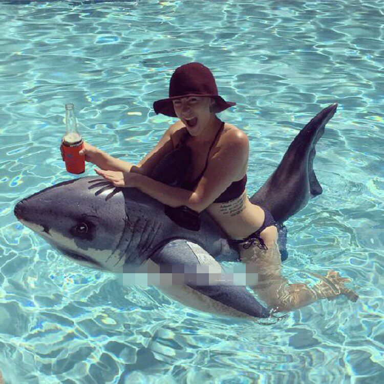 intex inflatable large - scale shark adult ride children swimming drama water big white shark seat ride a flush toy