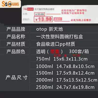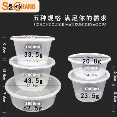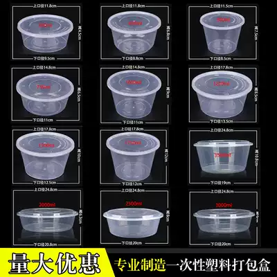 Round 1000ML disposable lunch box plastic packing thick transparent delivery lunch box with lid