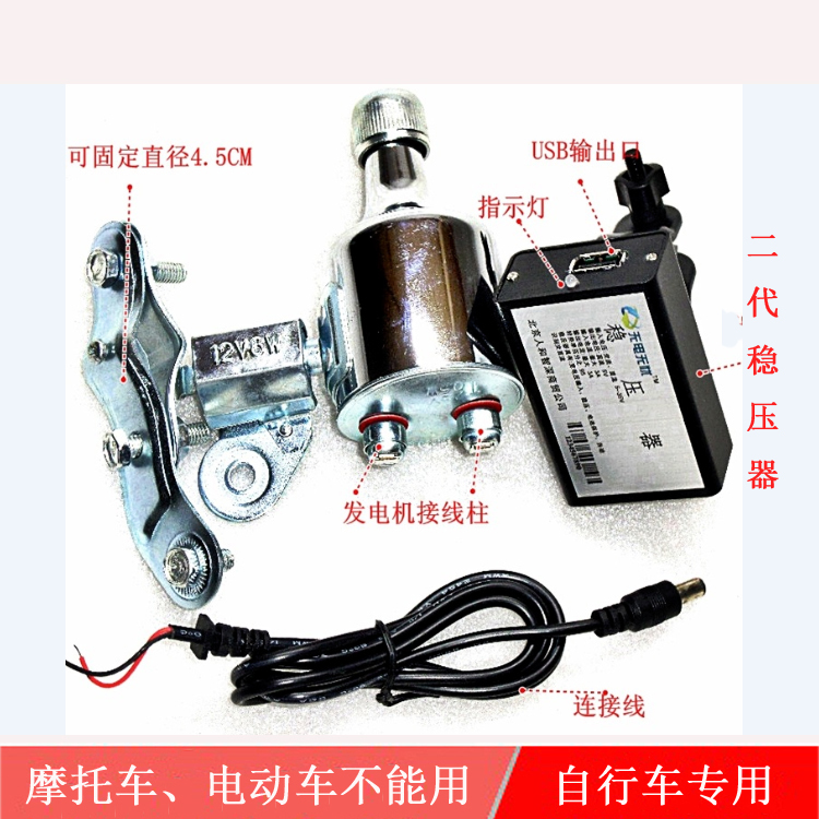 12v6W bicycle power grinding motor with 2 generation regulator can charge U2t6 lighting bicycle lights