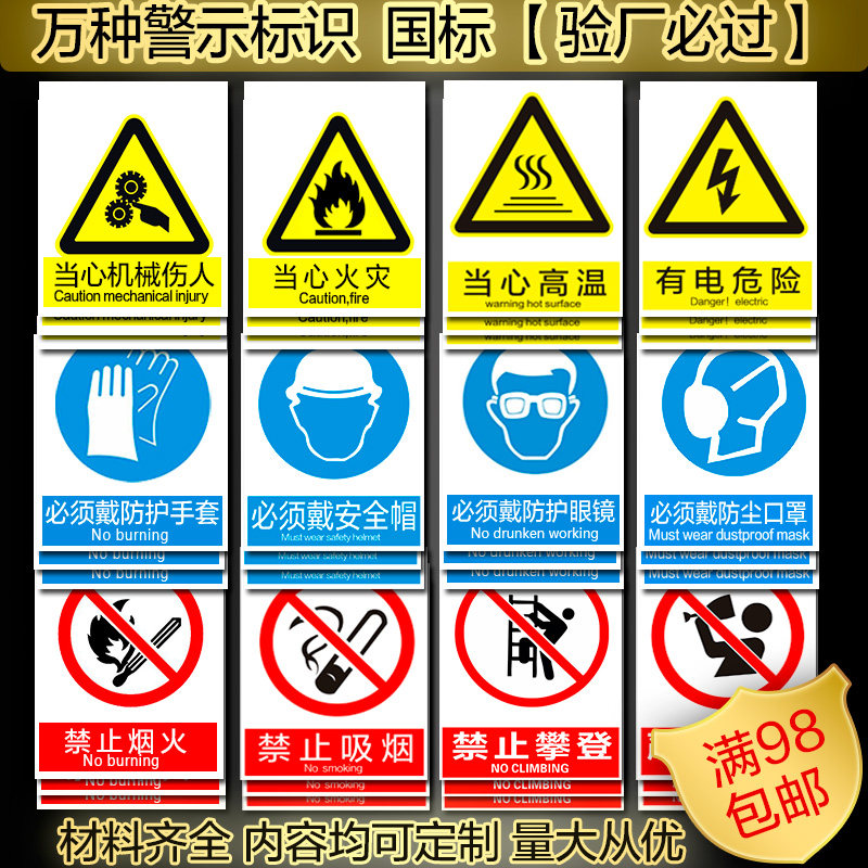 Safety ID card signs Signs Warning Signs Factory Logo Signs Ban Smoking Watch Beware Electric Hazard Set