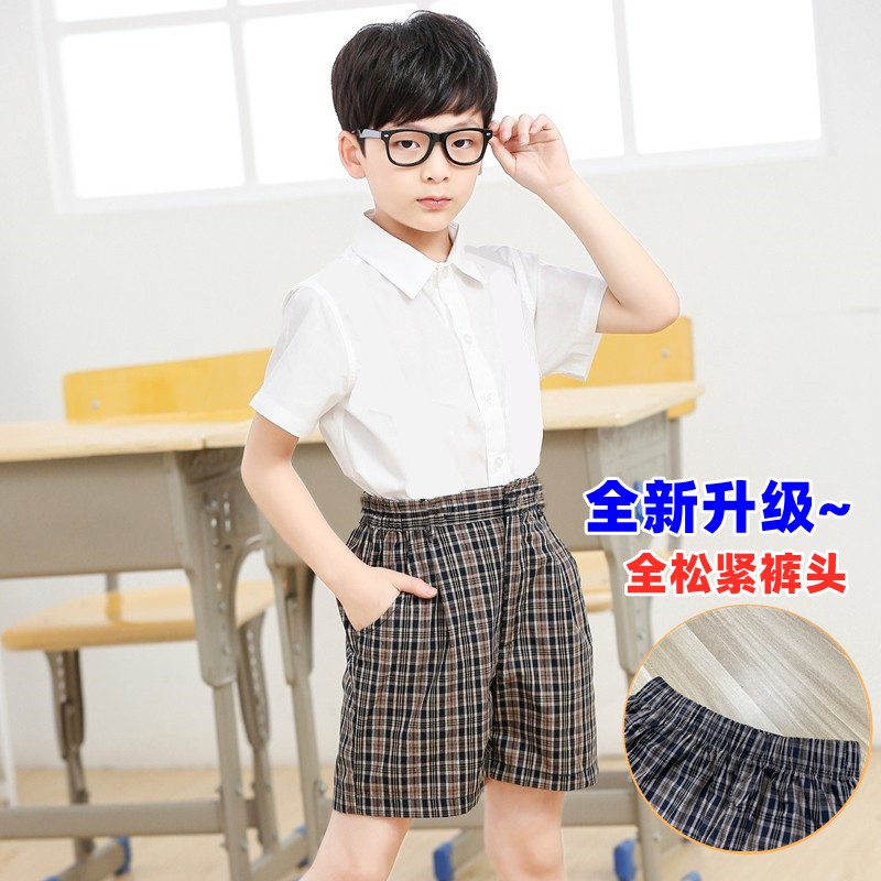 Shenzhen Elementary School Student School Uniform Dress For Men And Women Short Sleeves Shirt Spring Summer Short Skirt Suit Plaid Shorts Uniform