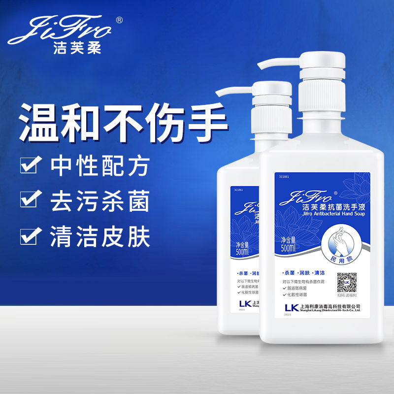 Jiefurou antibacterial hand sanitizer 500ml 2 bottles of children's household colorless and odorless cleansing, moisturizing, sterilizing and antibacterial