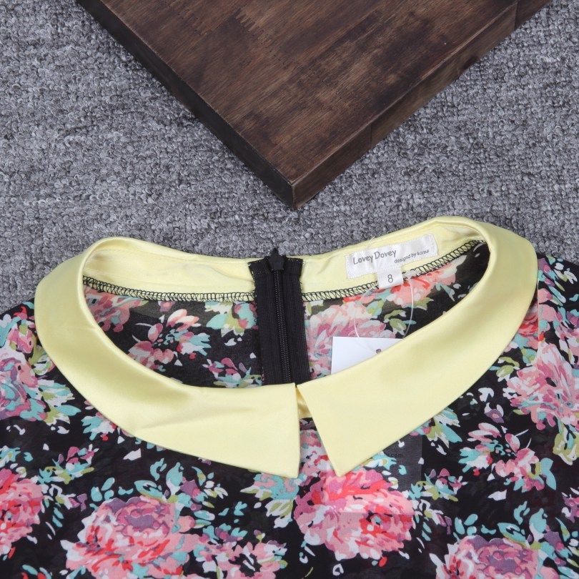 Lapel-spliced floral short-sleeved chiffon blouse women's summer 2022 new semi-sheer loose pullover foreign pie blouse
