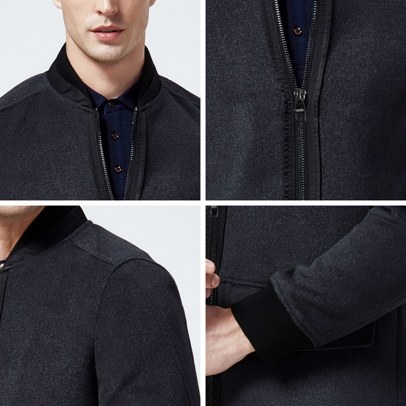 Golden Lili for spring autumn men's wool blend warm thick solid rosary splicing upright collar medium long version coat jacket