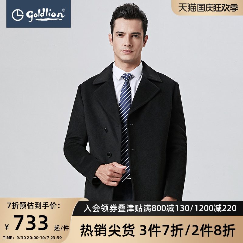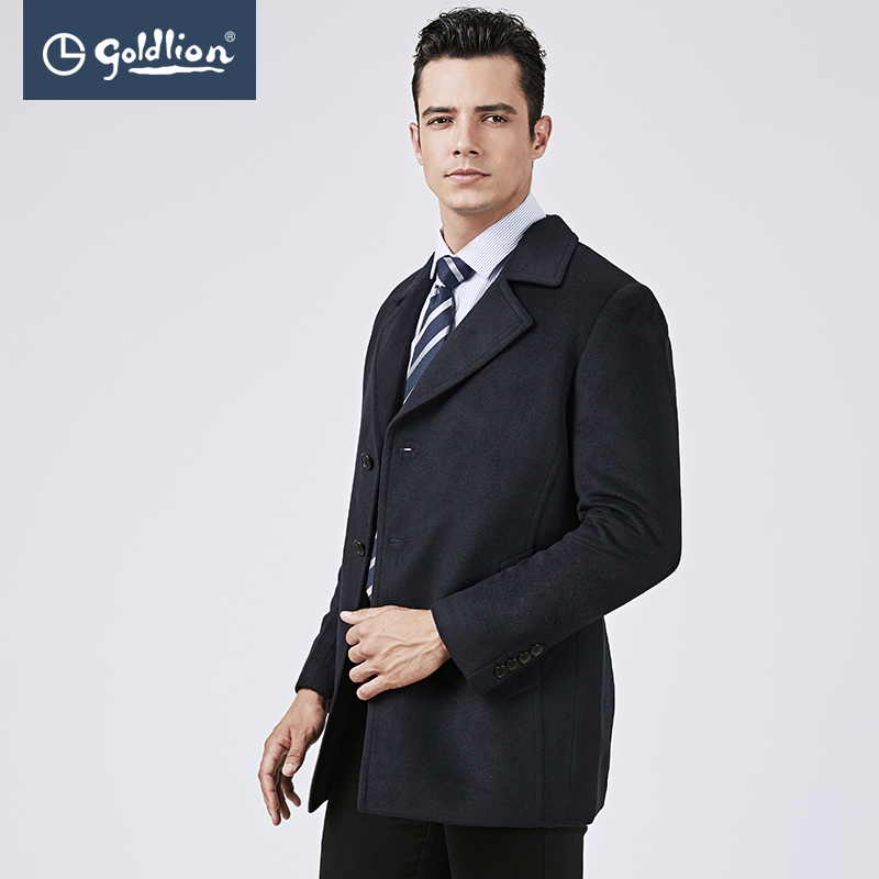 Goldlion men's wool blend warm and stylish business mid-length woolen coat in autumn season