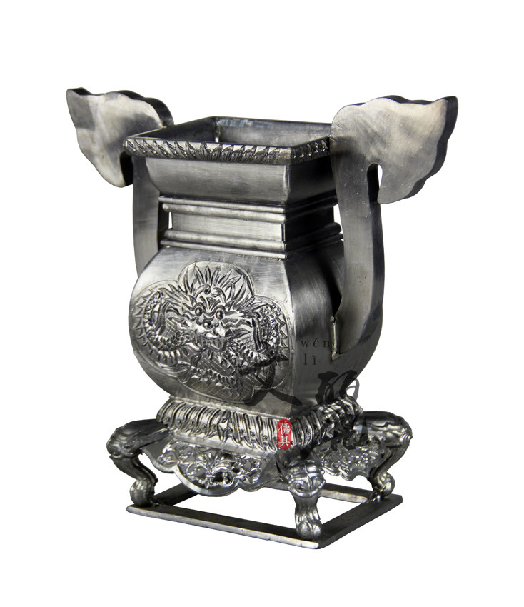 Vinli Buddhist supplies Marriage sacrifice and anxiety furnace Ding tin - made double - ear incense stove handicraft tin