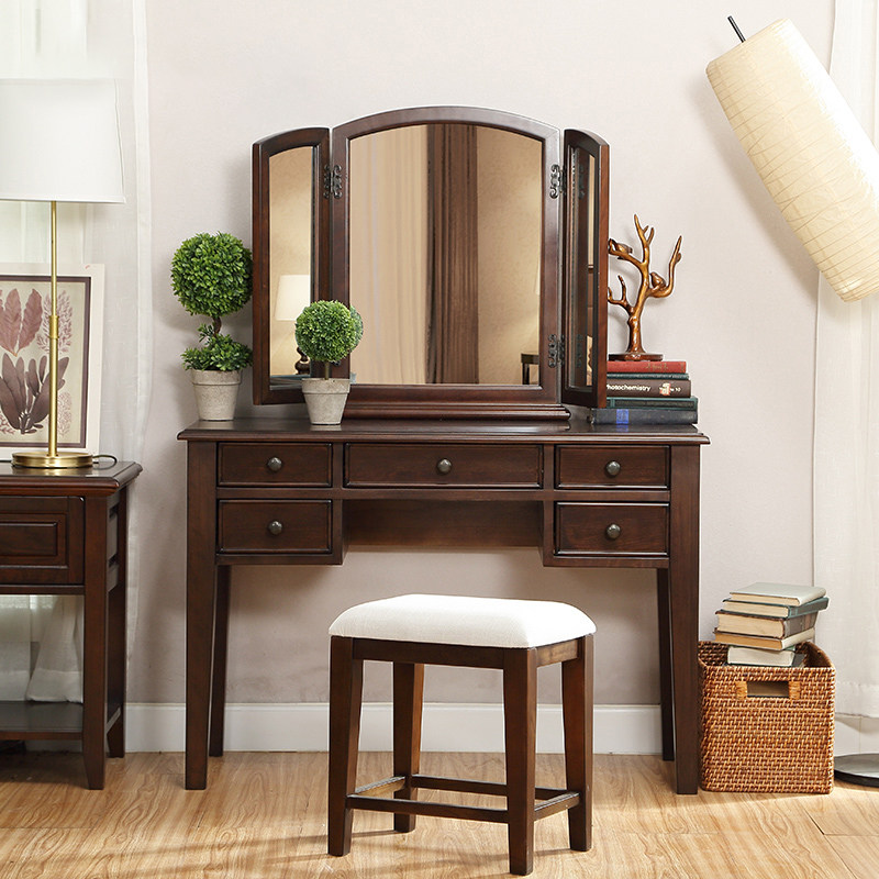 Xihe Retro American Solid Wood Dressing Table Makeup Table Bedroom Furniture Cherry Wood