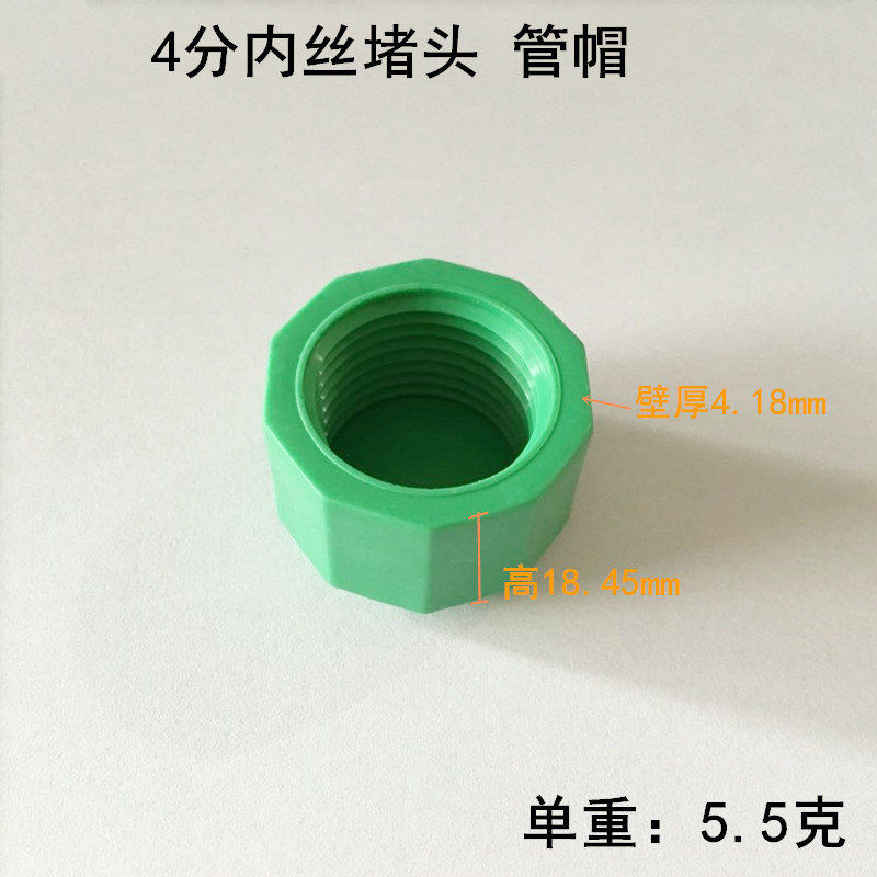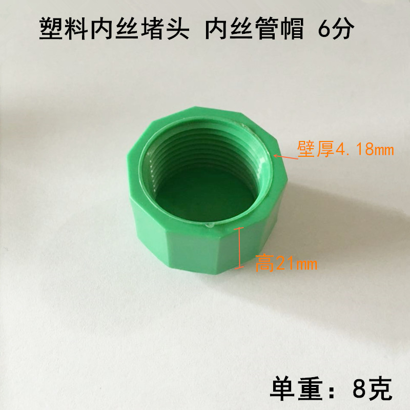 PPR plastic inner wire tooth pipe plug 4 minutes 6 minutes 1 inch inner tooth thread pipe cap water pipe hexagonal stuffy head plug cap green