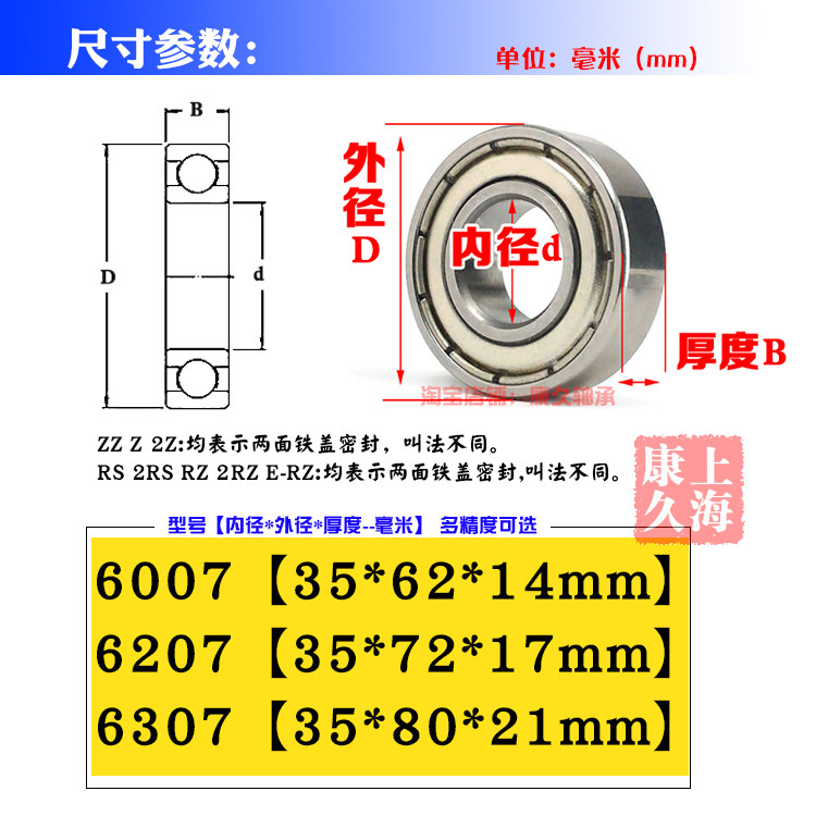 Deep groove ball mechanical ball bearing 6807 69076007 6207 6307RS ZZ RZ inner diameter 35mm