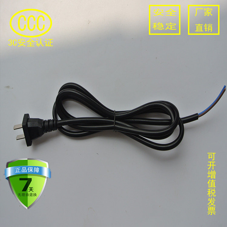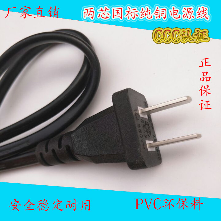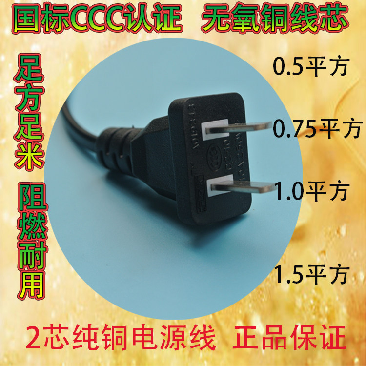 Power cord 0 5 square pure copper two-core national standard 3C single head white black flat wire 1 m 1 5 m 1 8 m 2 m