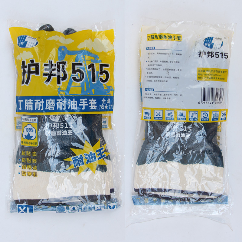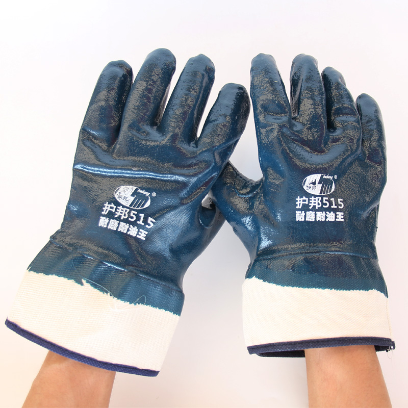 Large Caliber Full Hanging Blue Din Clear Canvas Anti Oil Rao Oil Resistant Anti-Slip Gloves Abrasion Resistant Protective Hanging Glue Hand Thickened