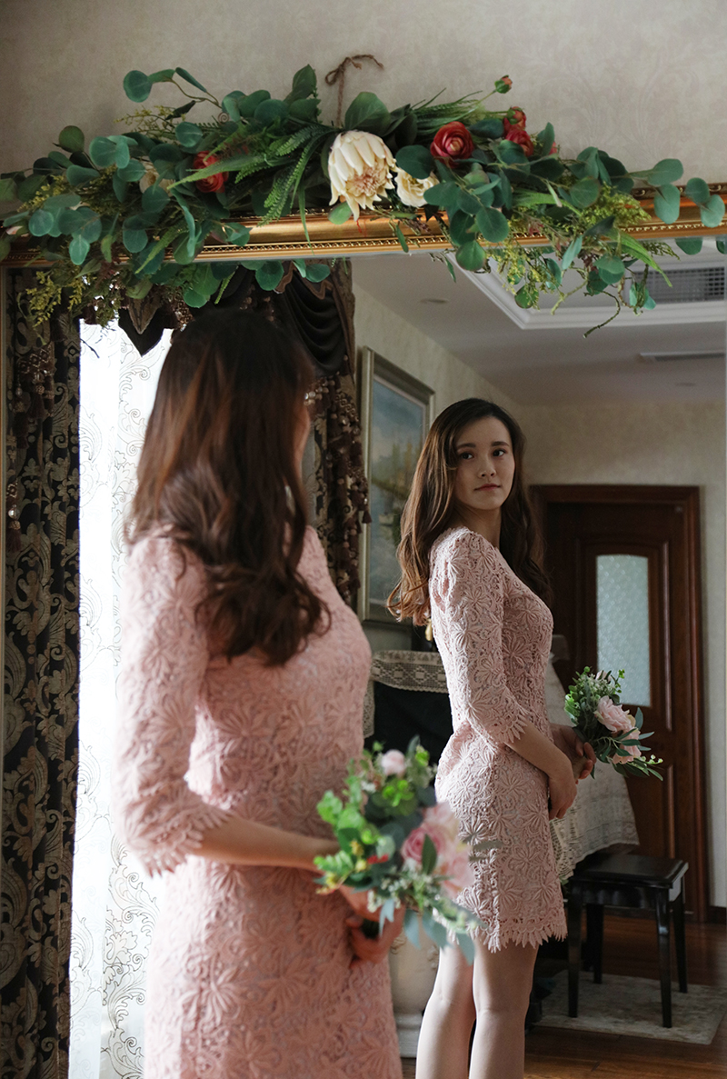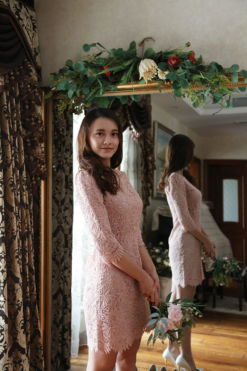 < Arctic Light > Spot Korea Retro Pink Lace Dress Wedding Party Wedding Party Bridesmaid Service