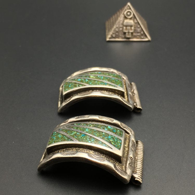 1970s USA Indian Zuni tribe Natural green pine stone 925 pure silver vintage Antique Watches Cingulum Male