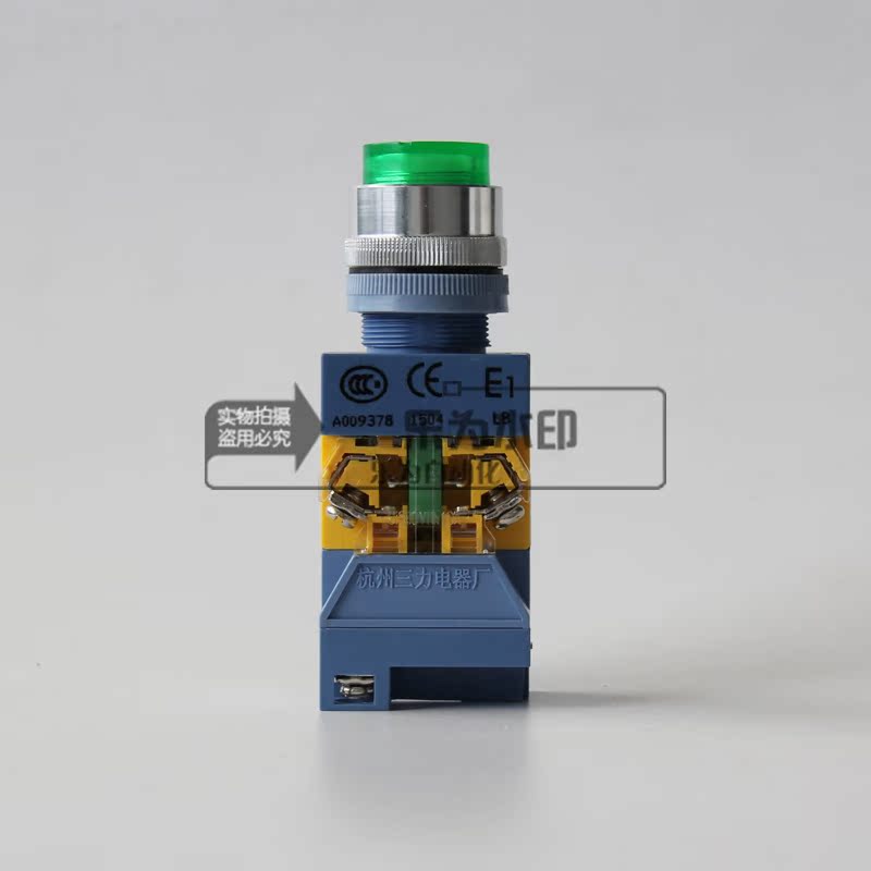 Button switch green with lamp LED self-lock two normally open LAY16-E1 20 220VACL three forces