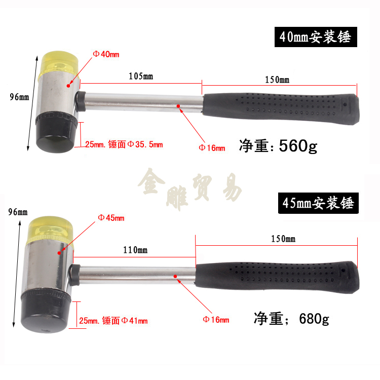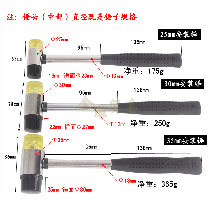 Steel pipe handle installation hammer Small rubber hammer Rubber hammer Rubber hammer Nylon hammer Hammer Replaceable hammer