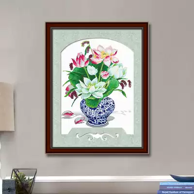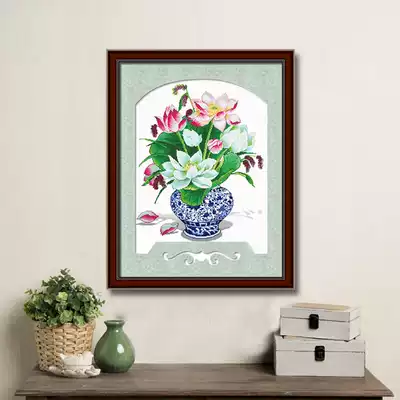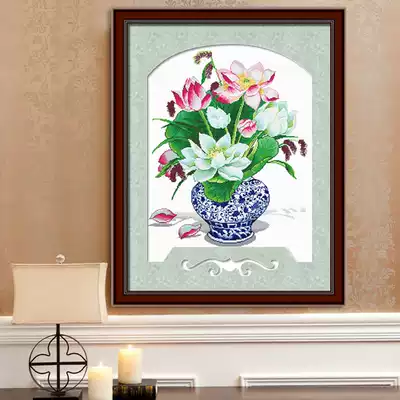 Cross stitch living room 2021 New thread embroidery bedroom Lotus Blue and white porcelain bottle small pieces flower series simple embroidery