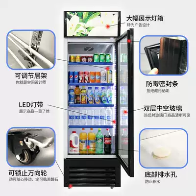 Qiaoyi double door glass beverage display cabinet supermarket commercial refrigerator vertical large single door fresh air cold refrigerated cold drink