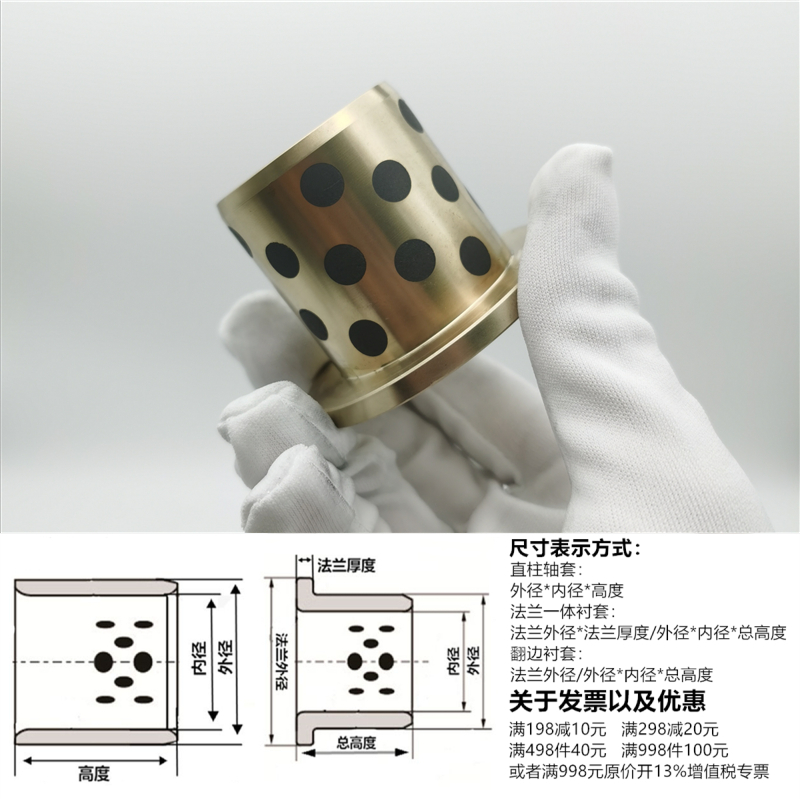JFB Oil-free copper bushing self-lubricating bearing OFN01 Shoulder graphite copper sleeve MPFZ13 Inner 14 Outer 19 20