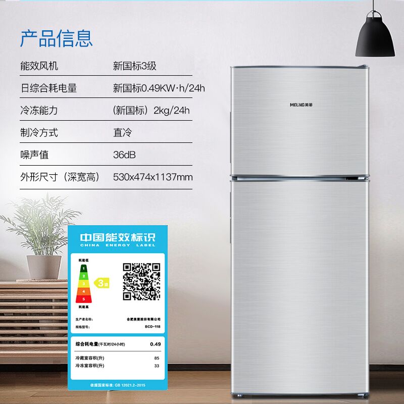MeiLing BCD-118 refrigerator small two-door household energy-saving silent refrigerator and freezer