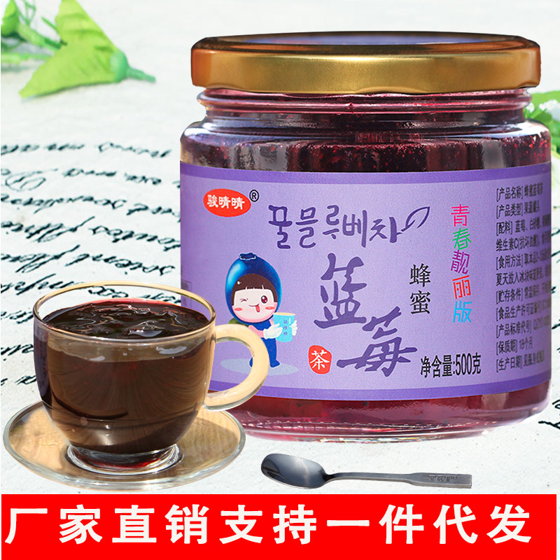Jun Qing Qing Honey Blueberry Tea 500g Canned blisters water drink drink Brewing water Grapefruit fruit tea sauce