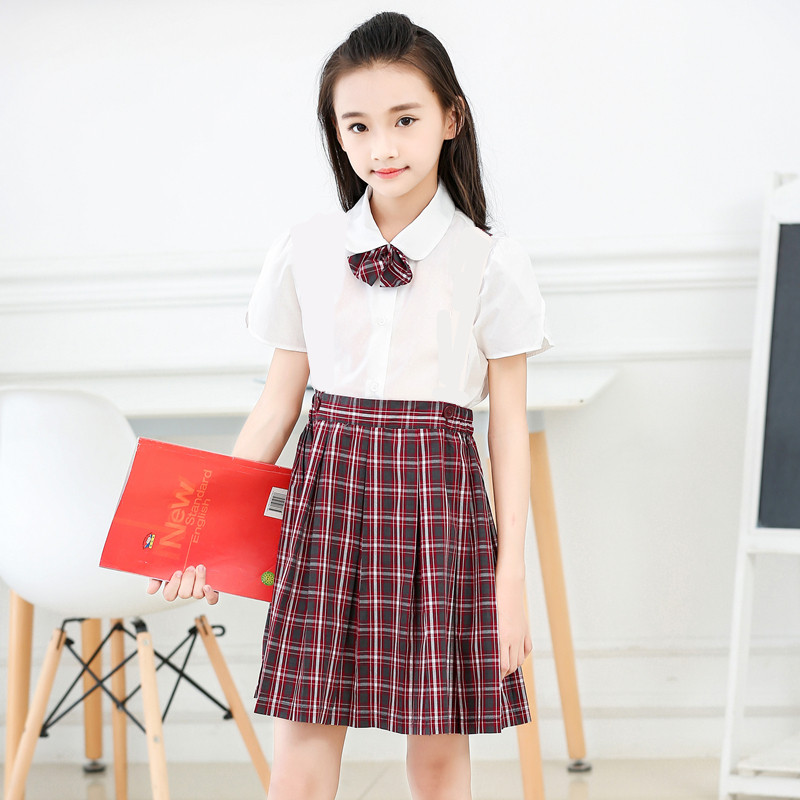 Shenzhen School Uniform Dress Uniform Elementary School School Gown dress for men and women Uniform Plaid Skirt Short Sleeve Shirt Gshorts Suit