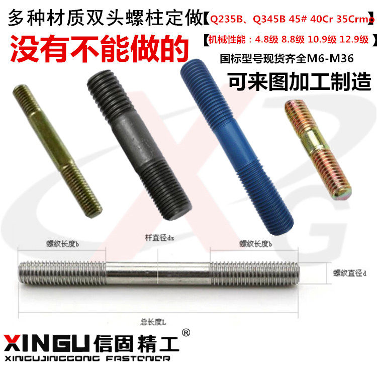 High strength 8 8 Class double head bolt GB898 unequal length double head screw M10 * 20-10 * 120mm